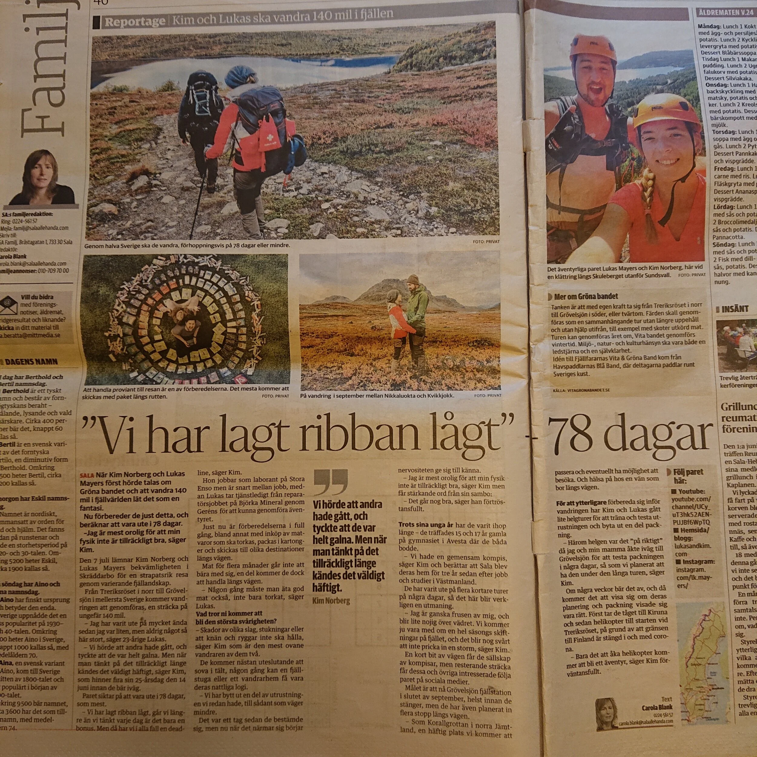 As time goes on and we get closer to starting our big hike, everything just keeps getting intenser. Last Friday we were in our local newspaper (yay!), but other than that and a new pair of Altra Lone Peak (I've officially joined the Altra-club now), our preparations for the hike have pretty much been set on hold. We went to see a friend and Lukas' sisters, and had a really nice and cozy weekend together, because yesterday was my 25th birthday (😱). The day in honor I had taken the day off from work so my sister and I could go and get a massage before the family came over for some Swedish fika. Unfortunately we had to sit in the barn because it was raining all afternoon, but we had a nice evening together anyway.